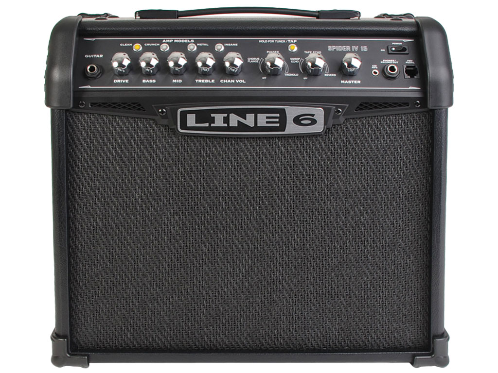 La vasta gamma di suoni dell'ampli Spider IV 15 inizia con forza, con un brillante e caratteristico suono pulito americano che poi si apre gradualmente per raggiungere la grinta dei classici amplificatori britannici vintage. Sperimenta la famigerata "Brown" distortion basata su un Marshall Plexi 100 del '68 con Variac e canali di ingresso ponticellati, ed il bruciante suono high-gain di una Mesa Boogie Dual Rectifier.