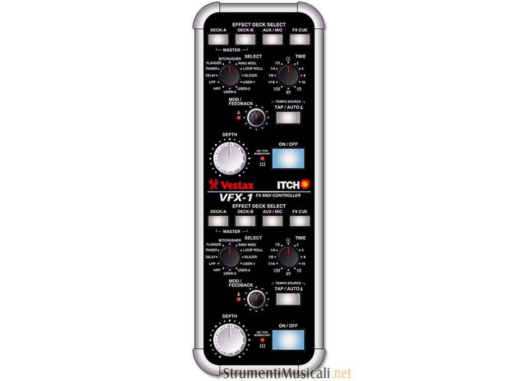 • Il VFX-1 è solo un controller midi e non un multieffetto, non include quindi alcun DSP. Così come per quanto riguarda il VCI-300 e gli altri controller Vestax, le prestazioni ottenute sono quindi sempre basate sul tipo di computer utilizzato e sul relativo processore.