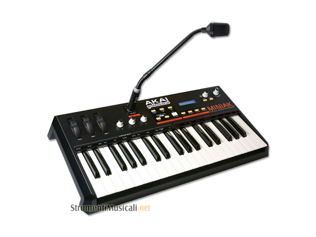The MINIAK is a powerful performance and production synthesizer. The MINIAK empowers creative musicians with phrase and step sequencing, a built-in drum machine/rhythm sequencer, an arpeggiator, a 40-band vocoder, stereo effects, and a virtual analog synth engine developed in partnership with the world-class Alesis synth team. While the compact, portable synth shines on stage, the MINIAK is also at home in the production studio delivering 24-bit audio resolution.