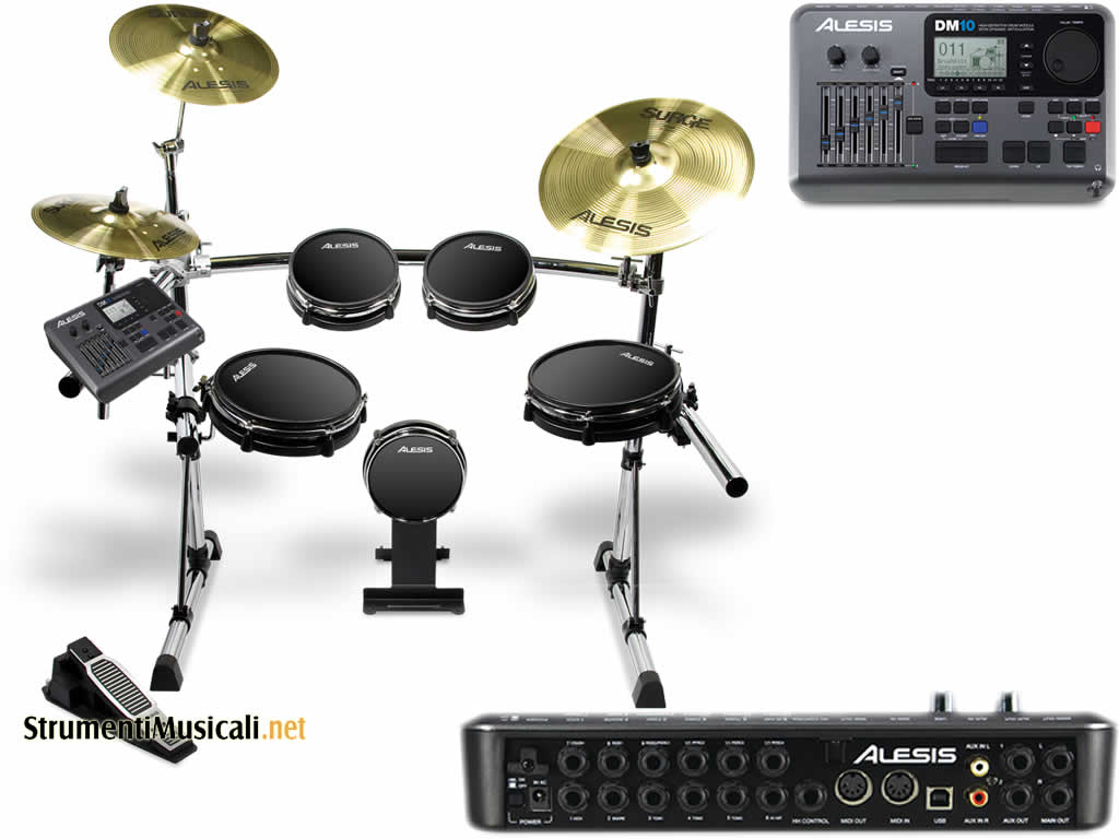 Il DM10 Pro Kit è il prodotto di un'intenso programma di ricerca e sviluppo. Basato nuovissimo modulo sonoro DM10, il DM10 Pro Kit è dotato dei drum pad Alesis RealHead , dei piatti SURGE Cymbals prodotti con la stessa lega di metallo dei veri piatti per batteria e del sistema di montaggio ErgoRack. Vi accorgerete immediatamente delle eccezionali qualità sonore del modulo DM10. Questo nuovo modulo contiene veri suoni di batterie, piatti e percussioni, campionati dalle migliori batterie e dai più rinomati piatti da studio di registrazione.