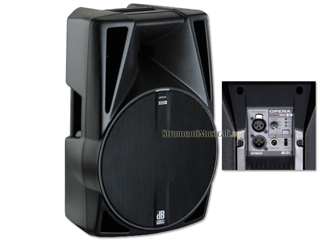 L'OPERA 605D concentra tutte le migliori caratteristiche dell'intera serie: l'amplificatore digitale digipro® da 600W con DSP integrato ed alimentatore in tecnologia switching, un robusto woofer al neodimio da 15" per una dinamica e profonda risposta alle basse frequenze ed un driver RCF con membrana in titanio da 1.4". Tutto questo in uno speaker che attualmente risulta essere il più leggero 15" al mondo: 600 WRMS in soli 12,9Kg di peso! L'OPERA 605D non è quindi solo il modello di punta della serie OPERA Digital, ma è anchè il nuovo riferimento per i diffusori attivi in questa categoria.