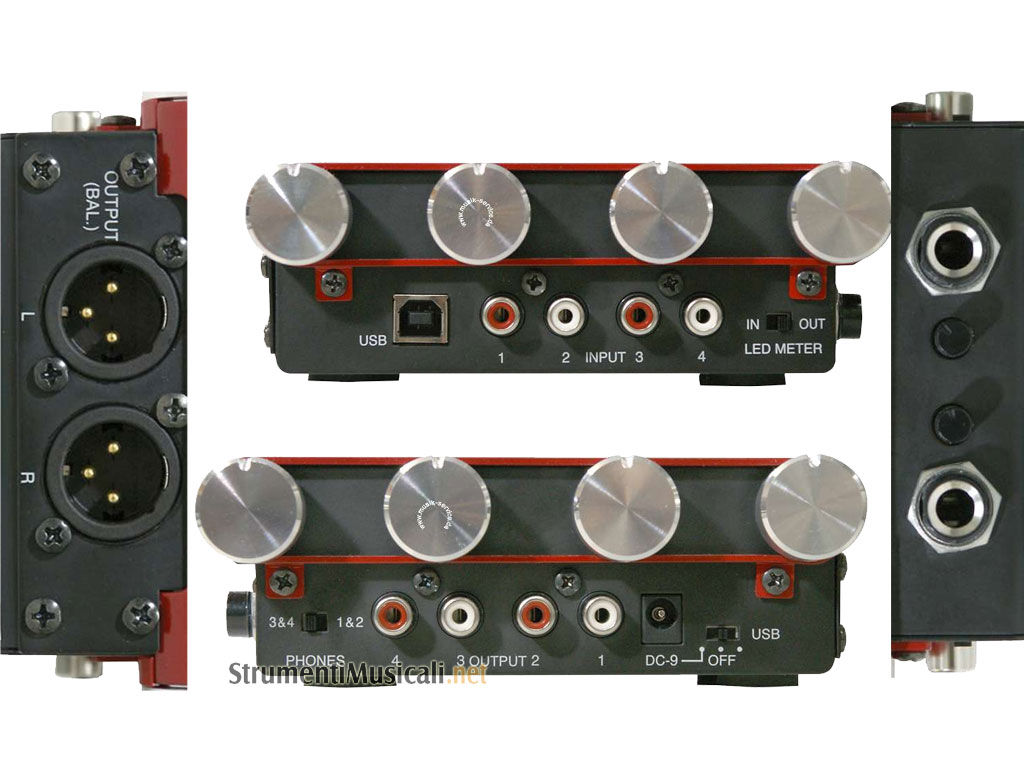 • ampie manopole sui lati per regolare con precisione volumi di ingresso ed uscita