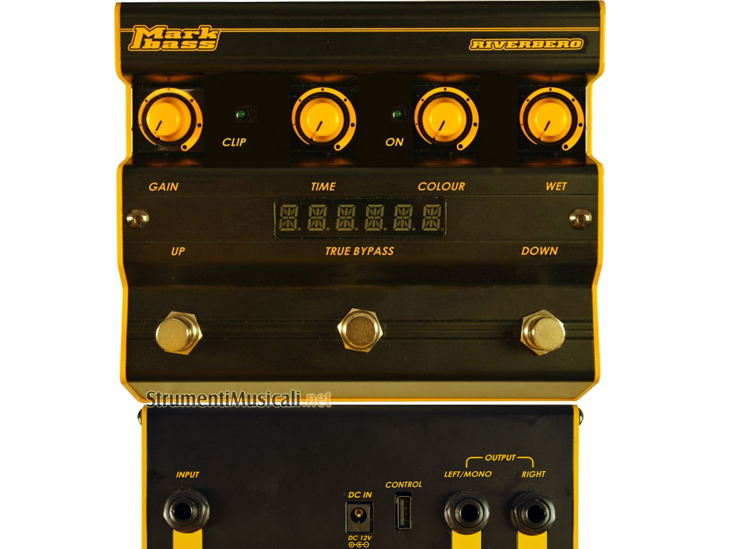 Il riverbero Markbass offre riverberi incredibilmente naturali, che grazie ai controlli Time e Colours possono essere finemente regolati. I presets stereo includono una ampia gamma di riverberi, identificabili sul pratico display e modificabili in tempo reale.