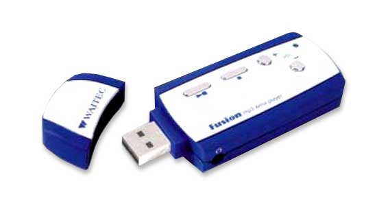Piccolo ma con un potenziale esplosivo, Fusion, il nuovo lettore MP3 di WAITEC unisce due funzioni in un unico piccolo, piccolissimo prodotto: non solo è un dispositivo mass storage USB, ma anche anche un lettore MP3/WMA con memoria integrata di 128 MB. (Potrete portare con voi un riserva musicale pari al contenuto di circa 3 Compact Disk!!!).