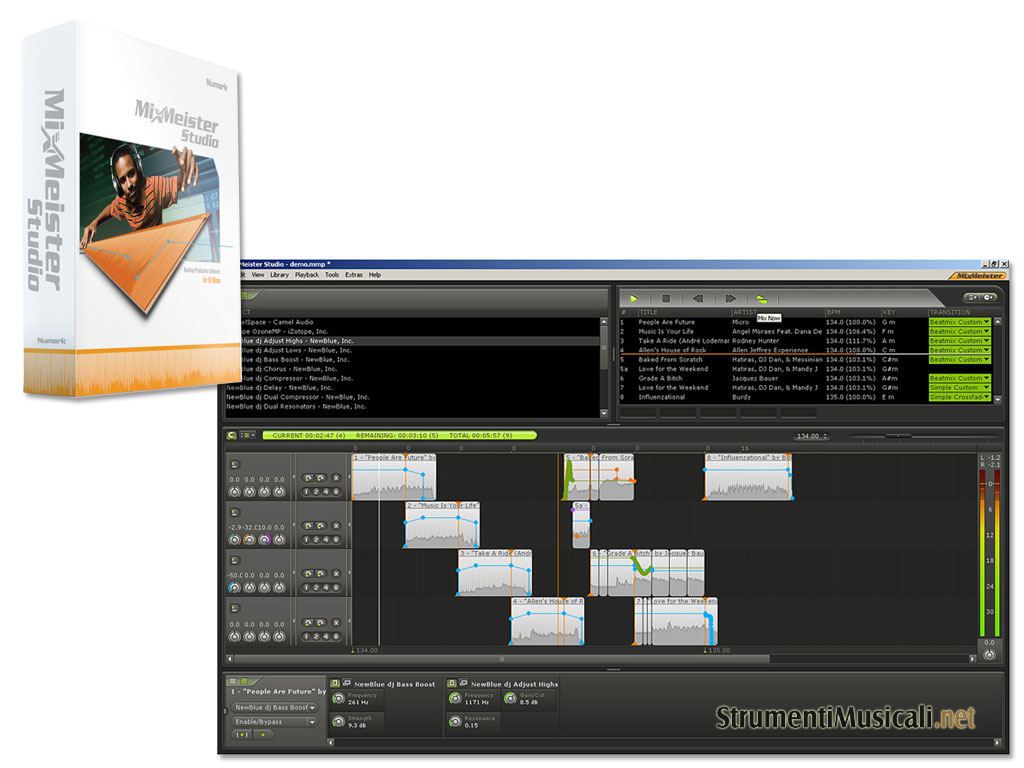 MixMeister Studio è un potente sequencer DJ che offre una maggiore capacità di espandere la vostra creatività e di produrre mix al di là degli standard tradizionali. MixMeister Studio ha cambiato il modo in cui vengono creati remix e rimane il miglior software di produzione per DJ .
