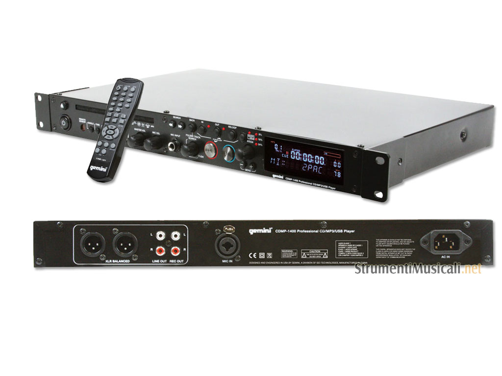 CD player rack mount 19'' 1U con caricamento a slide - antishock - pitch ±8/16/24% - pitch bend - seamless loop e reloop - illuminazione a led blue - play singolo, continuo e repeat - uscita xlr bilanciata - jog wheel con pitch bend per la ricerca delle tracce - contabattute integrato - legge audio CD e CD R - legge tracce MP3 e file audio prelevabili da qualunque hardware usb - telecomando IR in dotazione - scrolling per navigazione tracce mp3 - partenza istantanea e preascolto con preview - effetto scratch - ingresso microfonico con regolazione separata del volume