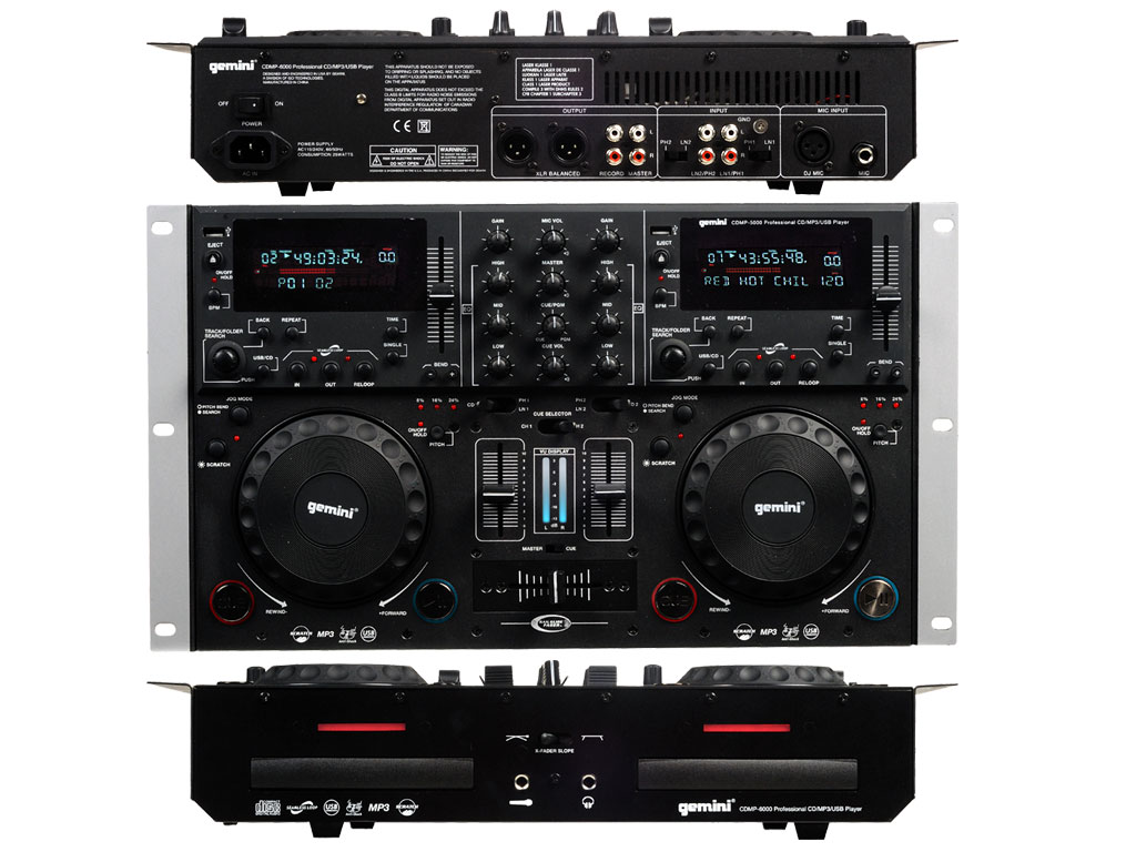 Gemini CDMP-6000 combina potenti funzionalità di riproduzione con una sezione mixer completa - tutto ad un prezzo molto abbordabile. Se lavori con CD, MP3, WAV il CDMP-6000 offre una soluzione versatile e affidabile per i DJ e le installazioni nei club. I deck CD sono pienamente compatibili con i CD audio, CD-R e CD MP3, mentre la porta USB permette di collegare un dispositivo USB e utilizzare i file MP3 e WAV memorizzati sull'unità. Non è mai stato così facile incorporare tutta la tua musica preferita nel set. Il CDMP-6000 dispone di due jog wheels sensibili al tocco che consentono Search, Scratch e Pitch Bend, il tutto con una vera sensazione di vinile. La console offre un fader pitch control variabile e una sezione Loop, assiema alla possibilità di creare e memorizzare i punti di cue. Inoltre, una funzione Tap BPM consente di identificare facilmente i battiti per minuto di un brano molto semplicemente e, per garantire prestazioni affidabili, il CDMP-6000 è dotato di un buffer di memoria RAM anti-shock. La sezione mixer include EQ a 3 bande, controlli di volume e gain, un selettore di ingresso del canale, il volume del microfono ed un VU Meter stereo. Un cross fader permette anche di mixare in modo uniforme da una fonte o da un brano ad un altro senza soluzione di continuità. E per la massima comodità di collegamenti, il CDMP-6000 offre uscite Master XLR e RCA, Record RCA, ingressi RCA Phono/Line convertibili e ingressi microfonici.