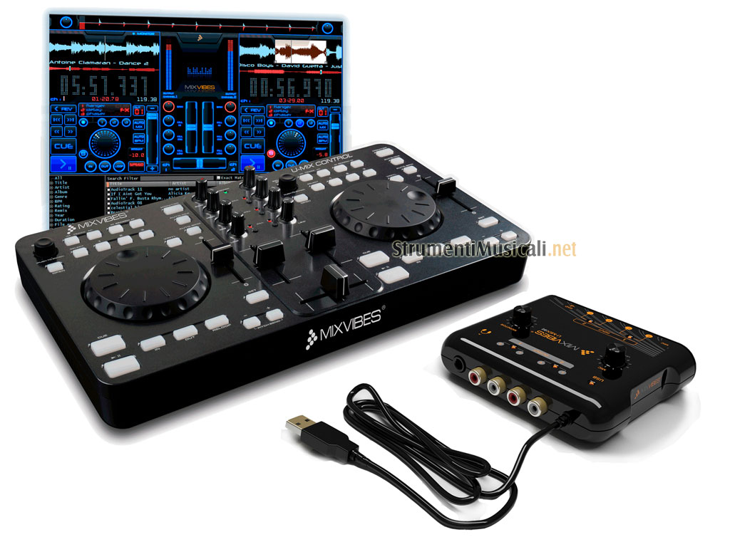 Controller MIDI-USB per controllare qualunque traccia audio come se fosse un disco in vinile o un cd. Nella versione pack viene fornito con scheda audio USB 4 in 4 out stereo a 16 bit / 48 khz.