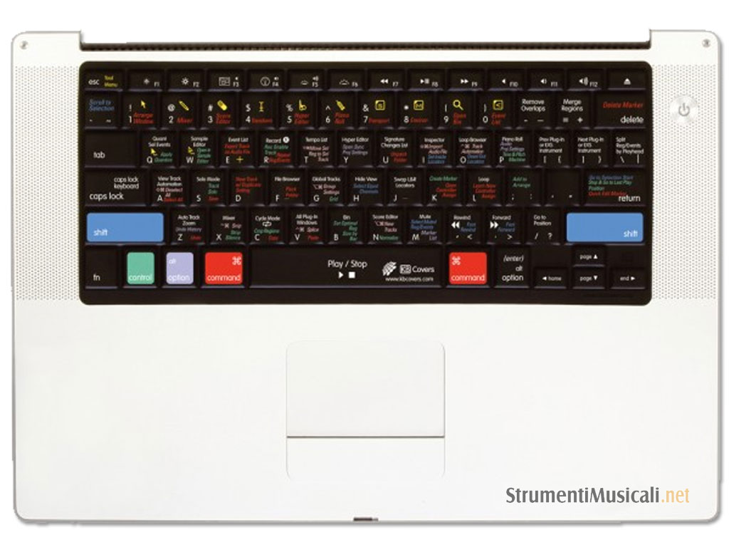 Copritastiera in silicone modellata per la tastiera del laptop new mac book e new mac book pro (alu) con comandi intuitivi per logic - laptop non incluso.