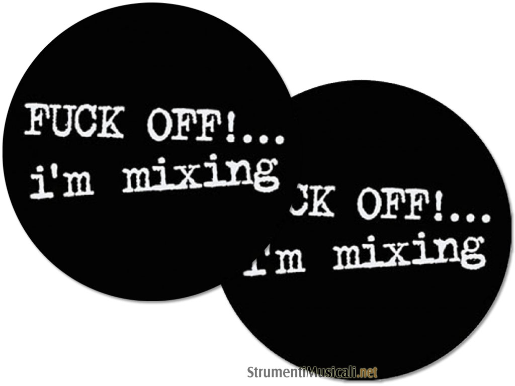 Coppia di panni technics "Fuck Off I'm Mixing" per scratch, cutting e cueing.