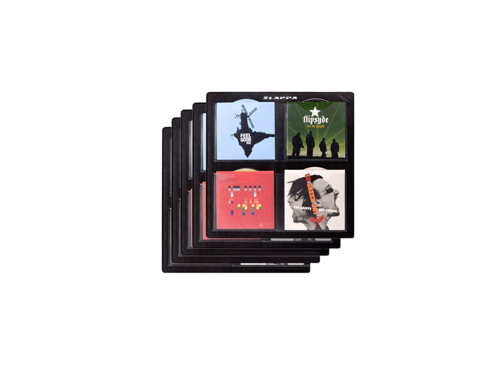 5 pagine in formato disco mix per posizionare 8 cd ciascuna. Avendo le dimensioni di un disco mix in vinile, può essere utilizzata per trasportare i CD in tutte le flight cases e le borse portadischi per dischi in vinile.