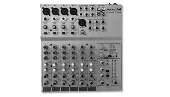 Il mixer 8 canali con effetti digitali ALTO L-8 è un mixer professionale compatto. Da questo apparecchio otterrete un suono lineare, accurato molto naturale ed "aperto", l'L-8 è veramente ideale per piccoli gruppi, registrazione, locali e installazioni fisse. II mixer 8 canali con effetti digitali L-8 è provvisto di caratteristiche che non si trovano facilmente in altri mixer delle stesse dimensioni: quattro canali d'ingresso mono (forniti di preamplificatori microfonici con bassissimo rumore ed alimentazione Phantom +48Volt) e due canali con ingressi stereo, ognuno di loro è provvisto di equalizzatore grafico a tre bande (HI, MID e LOW); unità effetti a 24 bit; 256 effetti (16 preset x 16 variazioni); 2 mandate AUX con controlli separati individuali per ogni canale; accurato indicatore di livelli con 12 segmenti e ritorno registratore stereo (2-TK) assegnabile a MAIN MIX, o alle uscite regia/cuffia.