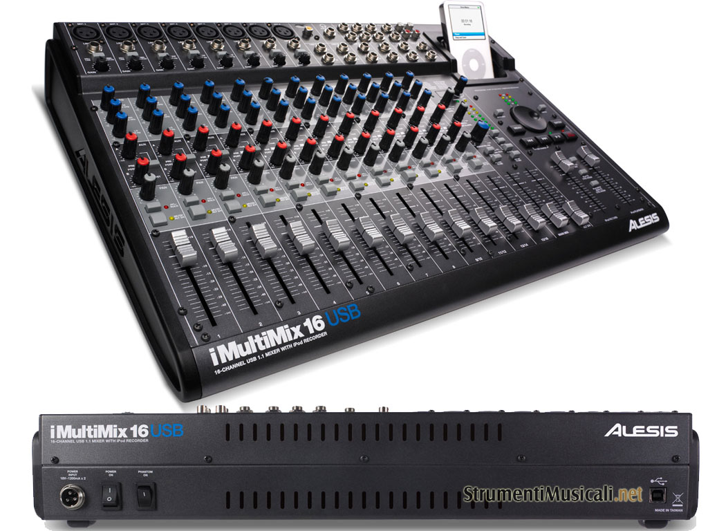 iMultiMix 16 USB è un robusto mixer per la registrazione sul suo Universal Dock per iPod incorporato o su un Mac o PC connesso tramite USB. Dispone anche di 100 effetti digitali 28-bit , limitatore, e controlli di trasporto per iPod.iMultiMix 16 USB è il primo mixer 16 canali a fondere qualità professionale di mixing, EQ a tre bande per canale, guitar/line inputs, e registrazione iPod in un unico pacchetto. Per registrazioni ultra-clean dal vivo di ogni performance, home studio, stage, podcast, e luoghi di culto, iMultiMix 16 USB è il partner perfetto.