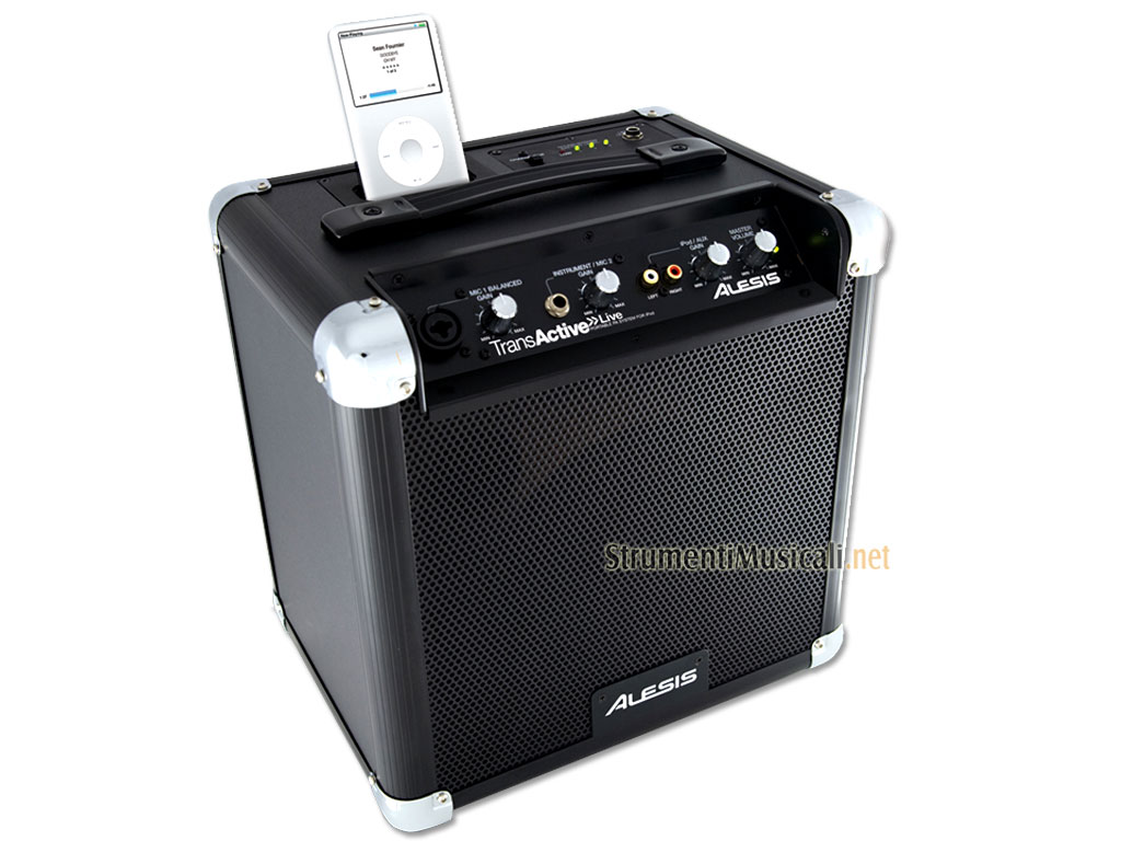 Alesis presenta le casse alimentate a batteria PA Transactive Live con dock universale per I-pod. Il sistema è dotato di un amplificazione di alta qualità e quattro entrate per connettere microfoni, chitarre elettriche, bassi tastiere o lettori CD/Mp3.