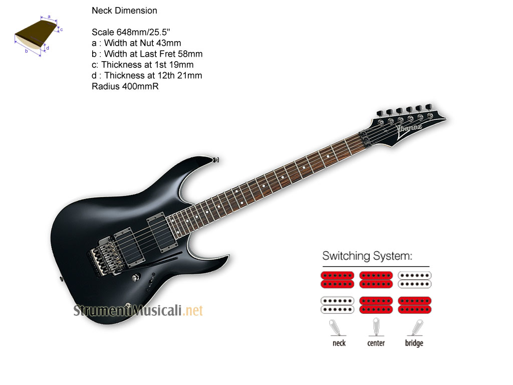 • Humbucker attivi IBZ LZ3-N (manico) + LZ3-B (ponte)