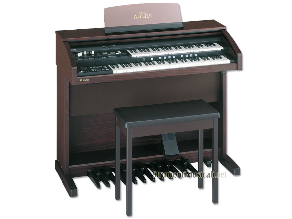 • Realistico design di organo con serrandina copri-tastiera scorrevole