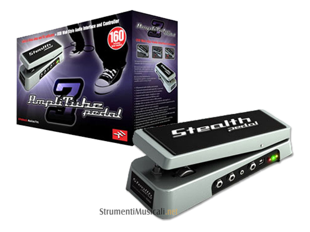 STEALTHPEDAL™ è il primo controller USB sottoforma di pedale wah che consente all' utente di registrare, suonare e controllare l' interfaccia audio/software "Powered by Amplitube" o qualunque altro software gestibile via MIDI, con la stessa facilità di uso ed espressività di un tradizionale pedale per chitarra. STEALTHPEDAL™ permette a tutti di registrare chitarre o bassi con il proprio PC/Mac alla più alta qualità possibile, con una conversione 24-bit A/D e D/A a 44.1/48 KHz. Sono inoltre presenti due ingressi separati per strumenti Hi-Z or line level , così come due output separati altre ad una uscita per cuffie. STEALTHPEDAL™ funziona anche come controller software: il pedale d'espressione e lo switch possono essere associati con qualunque parametro del software "Powered by Amplitube", e con qualunque altro modellatore di effetti o di amplificatori controllabile via MIDI. Lo STEALTHPEDAL™ può essere completato con un un pedale d'espressione addizionale e due switch extra per costruire una mini-pedaliera e controllare singoli effetti - preset per un uso dal vivo a in sala. STEALTHPEDAL™ gestisce qualunque plug-in, strumento virtuale o DAW controllabile via MIDI.