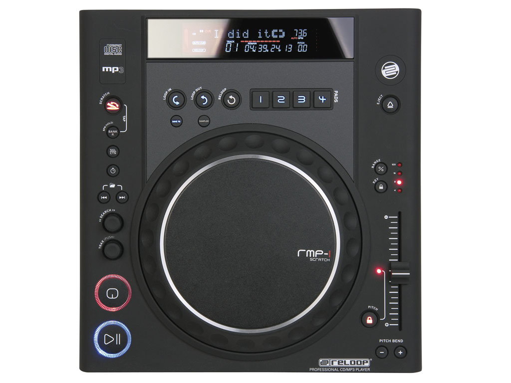 Il nuovo Reloop RMP-1 Scratch MKII Black è un CD player professionale MP3 compatibile, caratterizzato da un sofisticato simulatore di scratch basato su DSP. Il jog wheel a doppio sensore di grandi dimensioni consente di ottenere un "effetto vinile" estremamente realistico, il bordo è utilizzato per la ricerca e per controllare il "push-starting" e il "braking" del brano, mentre la parte interna attiva la funzione scratch simulator. Reloop RMP-1 Scratch MKII Black è inotre dotato di un BPM counter, 4 sample bank con 5 secondi di campionamenti ciascuno, 4 CUE point indipendenti, supporto ID3-TAG e CD text, ricerca track and folder, display FVD di grandi dimensioni, pitch +/- 4/6/8/16/100% con master tempo, pitch bend fino a +/- 100%, funzioni auto cue, loop/reloop senza fine, frame search, instant start, relay e fade start play, memoria anti shock da 10 secondi, uscite audio di linea e digitale, uscita per cuffie con volume regolabile e finitura in gomma nera.