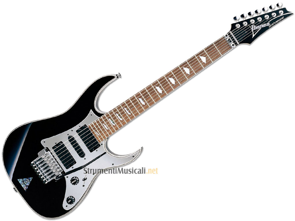 La Ibanez UV777P è la chitarra elettrica 7-corde Steve Vai Signature con un body in Tiglio Americano, manico UV a 24 tasti Jumbo. La UV777BK Steve Vai Signature è dotata degli incredibili pickup DiMarzio Blaze in tutte le posizioni, dell'originale ponte Lo-Pro Edge a 7 corde così come degli intarsi sul manico disappearing-pyramid.