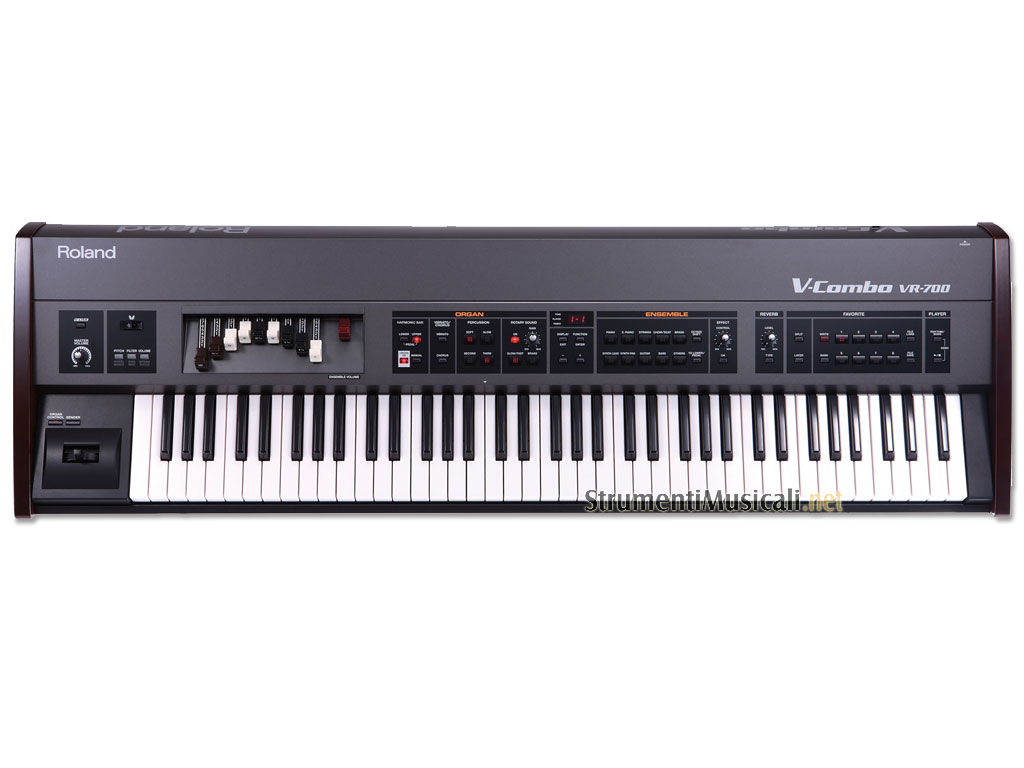 Siete stanchi di setup di tastiere ingombranti e dispendiosi? Il nuovo V-Combo VR-700 risponde a tutte le vostre esigenze sul palco. Il V-Combo offre la possibilità di grandi performance in tempo reale insieme ad una semplice interfaccia utente. E' dotato del leggendario suono di organo "Virtual Tone Wheel organ" e di Harmonic Bars incorporati, più una selezione di suoni essenziali di grande qualità (grand piano, EP, strings, brass, synth leads, e altro) garantendo le prestazioni di un intero setup di tastiere ma con grande facilità di trasporto e montaggio. Possibilità di riprodurre basi, ritmi incorporati, grandi effetti e tastiera tipo waterfall: questa tastiera multifunzionale è il sogno per tutti i tastieristi live!