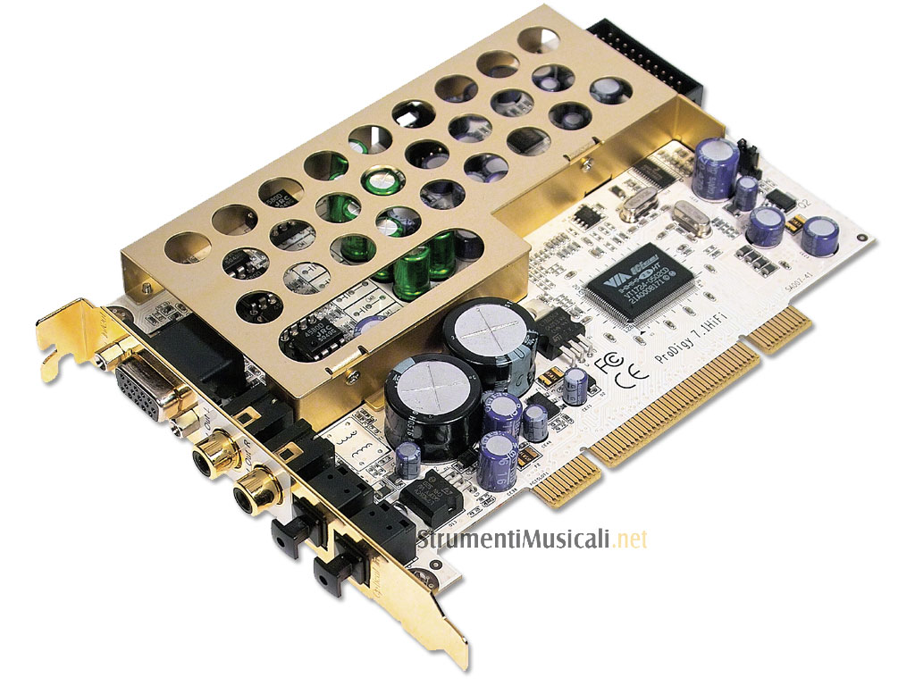 La Prodigy 7,1 HiFi è basata sul potente controller audio VIA Envy24HT (ICE 1724) e sul codec Wolfson WM8776 / 8.766, supportando 2, 4, 6 (5.1) e 8 (7.1) canali, così come il canale ottico digitale di I / O con 24-bit/196kHz. Per fornire segnali di uscita stabili ad alto livello, la Prodigy 7,1 HiFi utilizza una raffinata selezione di condensatori di alta qualità da Sanyo (serie SP) e da Nichicon (fino a 2200uF serie UR / Nichicon serie ES) per ottimizzare l'alimentazione dei componenti analogici e digitali sulla scheda e per ottimizzare la qualità audio in uscita. Il particolare design dei Prodigy 7,1 HiFi con i suoi 4 strati di PCB taglia fuori le onde elettromagnetiche dai meccanismi interni del PC - non ci saranno problemi di alimentazione instabile causata dalle CPU o dagli HDD.
