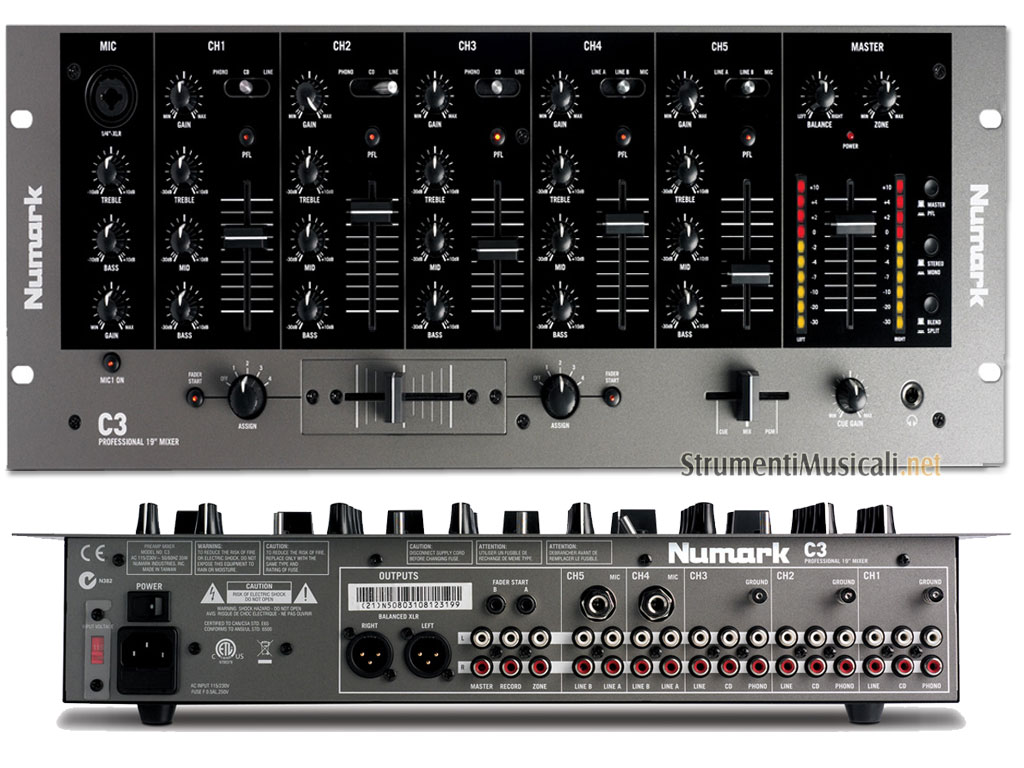 numark c3 , ecco un mixer dal costo possibile , dalle buone caratteristiche tecniche , e dalla completezza di dotazione , quello che un dj performer avanzato può desiderare , 5 canali più il canale microfono , tutto il necessario per collegare 2 cd player , 2 giradischi , una tastiera , sinth , batteria elettronica e/o campionatore e il microfono senza doversi affannare in inutili commutazioni . ordinato domenica , martedì alle 16,50 , grazie alla solita rapidità di StrumentiMusicali.net , era già in mio possesso , provato in “assetto di guerra” con due cdj 200 pioneer , 2 technics sl 1210 mk2 equipaggiate con testine stanton 680 el black e , il “mitico” roland dj 70 , microfono akg cuffia sennheiser , l’apparecchio dimostra subito la pasta di cui è fatto perché con tutte le sorgenti collegati in assenza di segnale e i volumi a zero , dove zero è quello segnato sul cursore non lo slider completamente giù , il fruscio di fondo è appena avvertibile , iniziamo le danze con i cdj per poi passare ai giradischi in combinazione con il campionatore e altri incroci vari tra vinili cd e campionamenti assortiti , dinamica soddisfacente e sensibilità degli ingressi phono ottima come descritto sulla carta e come tradizione in casa numark , apprezzabile la possibilità di esclusione del microfono con interruttore che non obbliga ad avere un microfono con interruttore proprio o peggio , ad alzare e abbassare il volume ogni volta che si parla , si lo confesso mi piace comunicare con il pubblico , altra buona cosa è il controllo del volume dell’uscita zone / rec , quando si usano , come nel mio caso , campionatori e/o digitalizzatori vari , si può fare tutto senza aver paura di pericolosi , tra virgolette , rientri , caratteristica di quegli apparecchi in cui l’uscita rec e/o zone non ha il controllo di volume/circuitazione separata dal master . uniche critiche , pulsanti preascolto migliorabili in manovra e , una certa forza nell’inserire i jack di microfono e cuffia ma questo solo la prima volta , si sente , la mancanza di un in out per effetti almeno sul master ma , a questo c'è rimedio , come faccio io col mio efx 500 pioneer , uscita master all'ingresso dell'effetto e uscita effetto all'amplificatore/amplificatori e/o sistema di altoparlanti amplificati . la dotazione è completata da uscita master bilanciata e standard e , da 0,5 w in cuffia ma a 47 ohm , il che vuol dire che se si usa una cuffia di impedenza inferiore , la mia è a 32 ohm , il volume aumenta , soddisfando così la maggior parte delle orecchie , anche se chi è pratico non vuole alti volumi di preascolto , sul pannello superiore , l’attacco microfono è di tipo combo , il che permette di inserire anche un microfono con collo flessibile , dispensandovi dall’usare un'asta per microfono . come scrivevo all’inizio il costo possibile , la portabilità , pesa circa 4 kg per cui anche con un case apposito non si superani gli 8 kg , e da ultimo il non stare in pensiero del tipo e se si rompe , fanno di questo apparecchio la soluzione ideale per i mettitori di dischi erranti che per una serata non percepiscono quello che si guadagna in due anni di lavoro da impiegato , sono costretti a portarsi la consolle , perché non fanno musica in locali dal nome altisonante ma , esercitano la loro passione , perché è solo la passione che ci/li muove , in discobar pub e/o feste private . voto 5 su 5 nella sua fascia di prezzo . brava numark !!! Marcello A. da Borrello