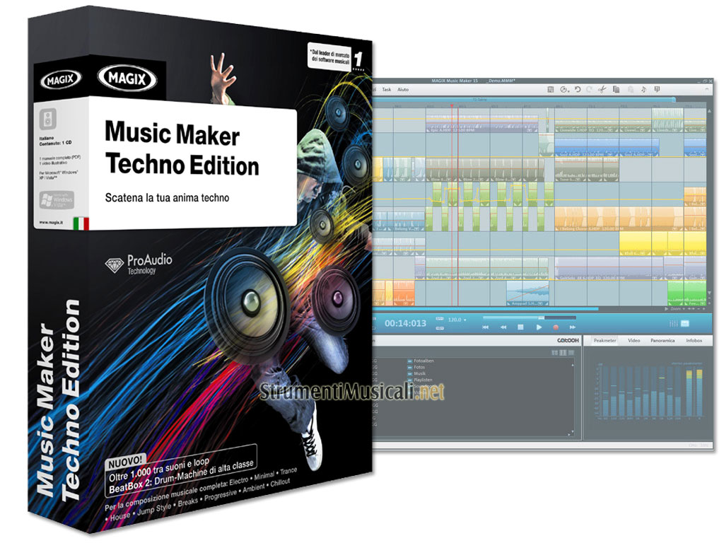 MAGIX Music Maker Techno Edition offre tutto il necessario per poter comporre la propria musica da club sul PC di casa. Creare le proprie tracce non è mai stato così semplice! Grazie alla nuova modalità Easy vengono visualizzati solo i comandi e le informazioni più importanti per facilitare il lavoro ai principianti. La nuova Infobox ha sempre qualcosa da insegnare. Consigli e trucchi in pratici video illustrativi. Anche senza nessuna conoscenza in materia e possibile iniziare subito a creare la propria musica imparando cosi tante nuove cose in materia. MAGIX Music Maker Techno Edition contiene oltre 1.000 tra sound e loop. Tutti i loop possono essere combinati semplicemente per la composizione delle canzoni. Il ritmo verrà inoltre sempre adattato automaticamente e non andrai mai fuori tempo! Un beat da solo non basta per creare una canzone. Con MAGIX Music Maker Techno Edition puoi registrare gli strumenti e la tua voce per arricchire il tuo archivio audio. Non importa se canti al microfono, registri strumenti, importi MP3 o canzoni da CD - puoi tagliare, remixare, elaborare ed arricchire con effetti tutto questo in modo molto semplice!