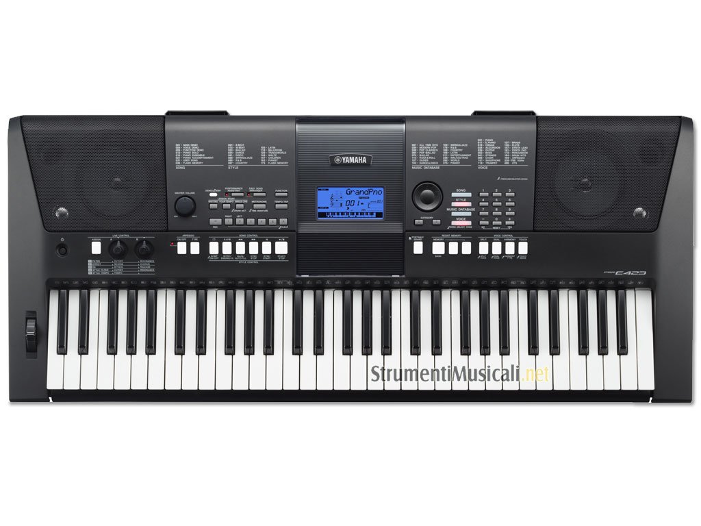 La tastiera con 61 tasti sensibile al tocco è dotata di 700 voci natural e della funzione arpeggio. La PSR-E423 offre numerose funzioni innovative. Le funzioni base per imparare a suonare, quali Yamaha Portable Grand e Yamaha Education Suite, e le funzioni che servono quando arriva il momento di suonare quali knob di controllo del sintetizzatre, controllo in tempo reale dei filtri, effetti, sound envelope e Style tempo. Nuovi coloriture tratte da diversi stili musicali possono essere aggiunti grazie a 150 pattern diversi e 40 voci arpeggio. Queste funzioni professionali semplici da usare, insieme al nuovo corpo nero, ritagliano a questa tastiera un posto a parte rispetto agli altri modelli dello stesso livello..