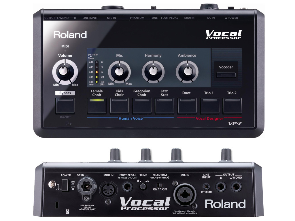Per tutti i tastieristi che vogliono aggiungere personalità ai loro cori, è disponibile il vocal processor VP-7! Potrete creare armonizzazioni istantanee, da una voce singola fino ad un intero coro, semplicemente collegando un microfono e connettendovi via MIDI alla vostra tastiera. E' semplicissimo, basta scegliere un suono dal pannello frontale e suonare. La sezione Human Voice garantirà un ricco coro semplicemente suonando - non avrete bisogno di cantare. La sezione Vocal Designer può generare automaticamente cori armonizzati a 2 o 3 voci seguendo la vostra voce principale. E per le voci in stile "robot", il tasto Vocoder vi permettera di avere immediatamente a disposizione un Vocoder stile Vintage.