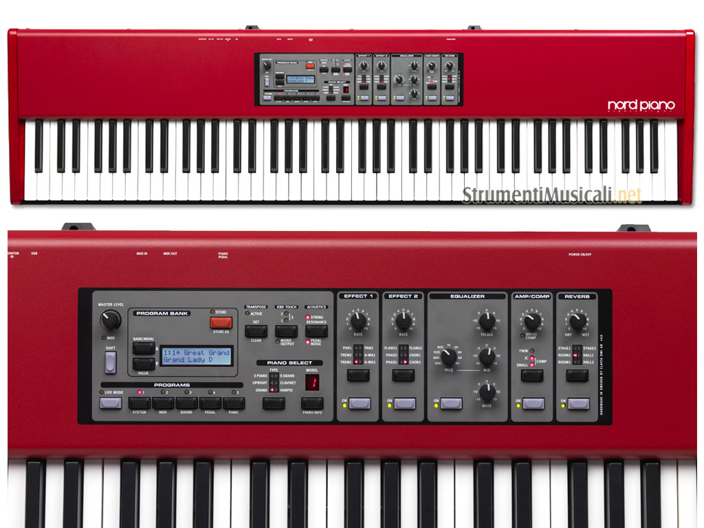 • tutti i suoni in dotazione possono essere scaricati dalla memoria RAM e sostituiti con altri campioni della Nord Piano Library