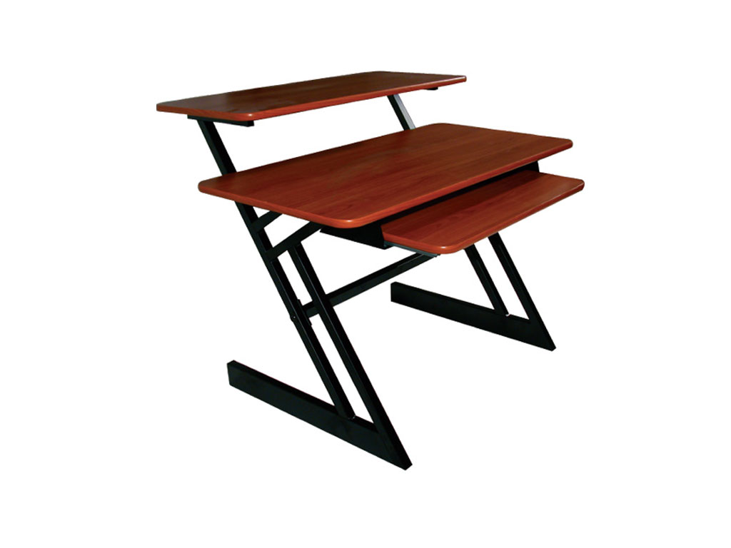 Mobile per computer e accessori con design a "Z" e mensola scorrevole, progettato ergonomicamente per il massimo confort ed efficienza. La postazione di lavoro Z/250 è costituita da tre ripiani laminati da 18mm di color ciliegio ed una robusta struttura in acciaio verniciata nera.