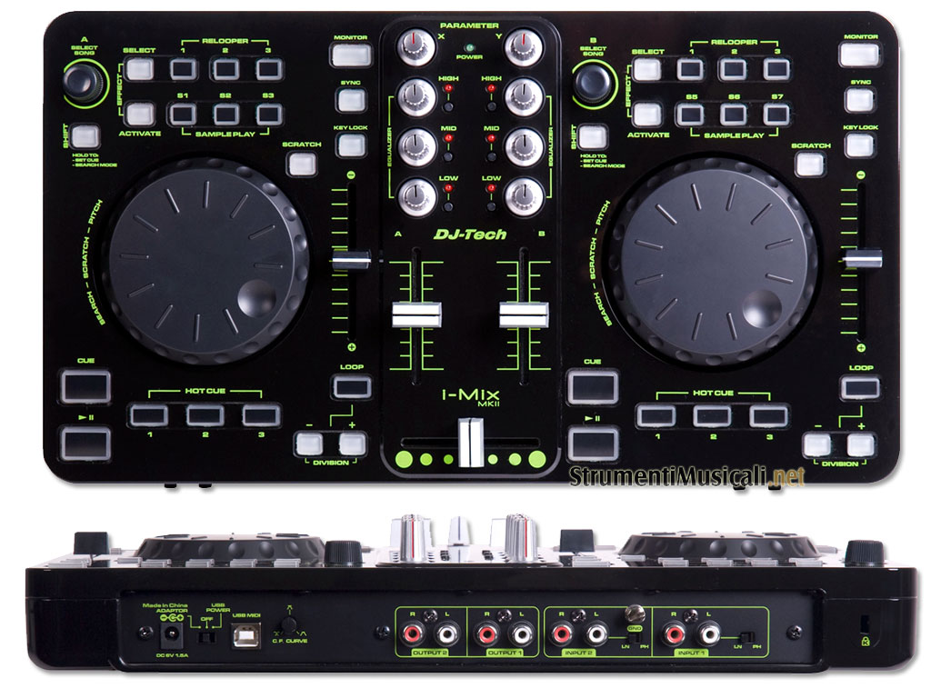 i-Mix mkII è un controller Midi con una scheda audio integrata di alta qualità. Potete controllare i vostri software da Dj e connettere diretamente le vostre cuffie ed il microfono. Grazie alla bassa latenza dei Driver ASIO avrete perfomance eccezionali. i-Mix MkII ha 2 Jog ad alta definizione ed un crossfader con curva di taglio aggiustabile adattabile ad ogni stile di mixaggio.