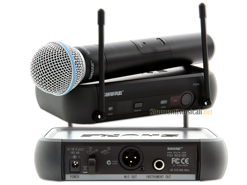 Sistema wireless composto da un trasmettitore a mano PGX2/Beta58 ed un ricevitore PGX4.