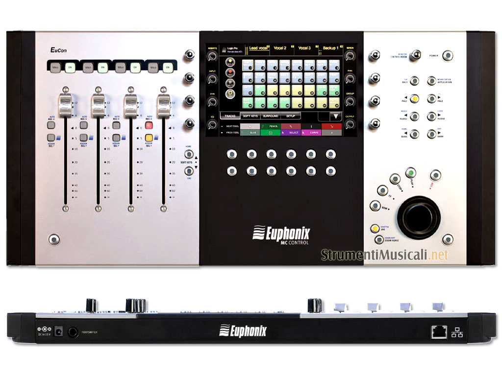 MC Control v2 ha lo stesso layout ergonomico e lo stesso design compatto della precedente versione, ma offre una grafica rinnovata e potenziata grazie ad un nuovo touch-screen retroilluminato a LED e gli otto nuovi encoder rotativi offrono un controllo tattile dei parametri ancora migliore. MC Control v2 è la nuova ammiraglia della Artist Series e vi mette a disposizione una serie di controlli che consentono di velocizzare e potenziare il lavoro praticamente in qualsiasi applicazione audio o video. Il cuore del nuovo MC Control v2 è una nuova interfaccia touch-screen retroilluminata a LED ad alta risoluzione 800x400 che offre un angolo visuale ampio, una grafica brillante e una straordinaria consistenza dei colori. Il touch-screen non solo mostra tutte le informazioni più importanti del progetto come i nomi delle tracce, i meter (dal mono al surround 5.1), le modalità di automazione, i valori dei fader e dei pan, ecc., ma consente anche di mettere in solo o in mute le tracce, armarle per la registrazione, controllare i Soft Keys e gestire il surround pan in maniera ancora più immediata direttamente dalla superficie di controllo.