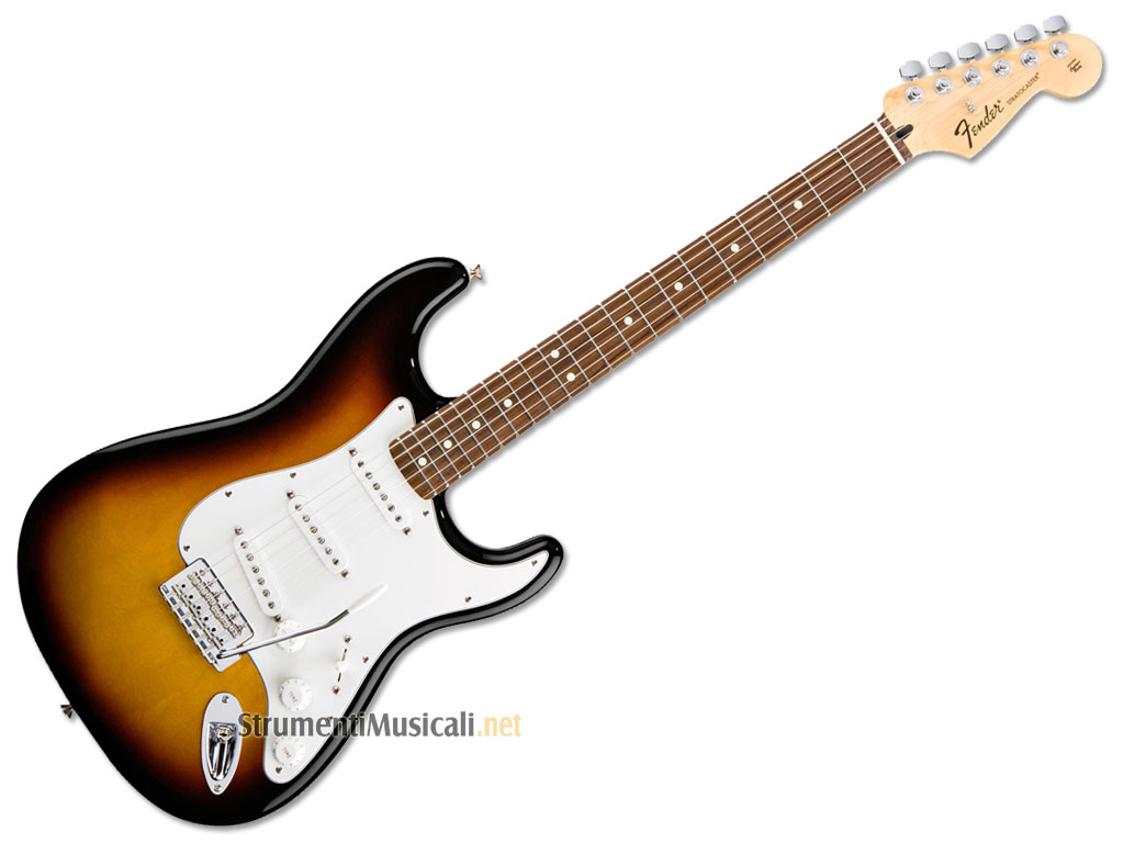 Il suono che ha creato una leggenda. La Stratocaster Standard offre il leggendario suono Fender combinato nello styling più classico, con configurazione 3 pickup single-coil, tremolo sincronizzato con blocco in metallo ad alta densità, cavità schermate e tasti medium-jumbo. Le nuove caratteristiche comprendono un manico verniciato, battipenna e controlli color pergamena e logo anni '70.