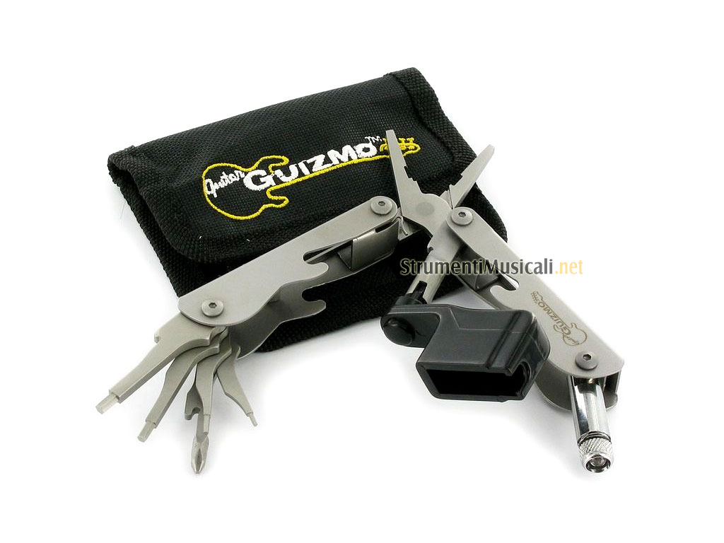 Guitar Guizmo è un accessorio unico per la manutenzione ordinaria e straordinaria della vostra chitarra; in un unico prodotto sono racchiuse tutti i principali strumenti per la regolazione e cambio corde delle vostre chitarre. Finalmente tutto quello che serve per la vostra chitarra in un'unico accessorio, senza impazzire con chiavi sparse per la casa.