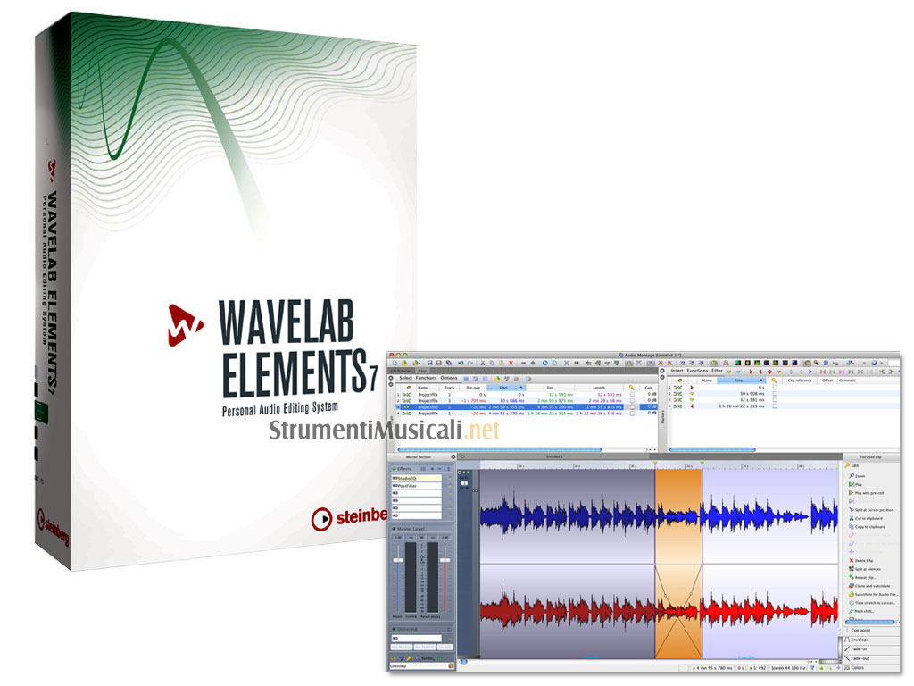 WaveLab Elements consente il miglior flusso di lavoro e offre ottimi strumenti per il mastering, l'editing e il restauro audio. Sia ai tecnici professionisti del mastering, che lavorano su produzioni CD e DVD audio di altissima qualità, che ai nostalgici della musica che desiderano restaurare le proprie registrazioni preferite o persino creare podcast al volo, WaveLab 7 Elements offre una schiera di strumenti che, integrandosi tranquillamente nella dotazione degli studi, potranno certamente soddisfare qualsiasi esigenza e superare le aspettative di chiunque.
