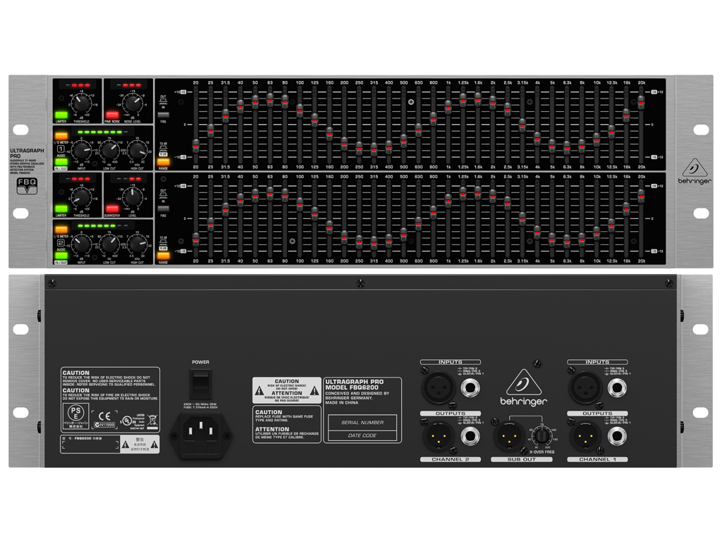 L'Ultragraph Pro FBQ6200 è un equalizzatore grafico stereo professionale, ultra-musicale a 31 bande, ugualmente adatto in applicazioni live e in studio. È dotato dell'incredibile sistema FBQ che rileva istantaneamente le frequenze di feedback e può essere utilizzato anche come un analizzatore audio, rendendo l'FBQ6200 una gradita aggiunta a qualsiasi rack. Un altro punto forte è la sua uscita subwoofer mono con frequenza di crossover regolabile, che consente di aggiungere spinta in più alla tua musica. Filtri aggiuntivi passa-basse e passa-alte per ciascun canale rimuovono le frequenze indesiderate come i rumori del palco ed i fruscii del nastro. Impostazione dei livelli facile grazie a LED meters di ingresso / uscita ad alta precisione a 8 cifre ed il controllo del gain in ingresso. Componenti al top come gli amplificatori a bassissimo rumore, ingressi ed uscite servobilanciate con connettori 1/4" TRS e XLR placcati in oro, hard-bypass controllato da relè con auto-bypass offrono prestazioni audio importanti.