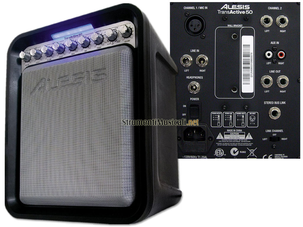 Il TransActive 50 è un sistema portatile da 50 Watt (RMS) multiuso composto da mixer, speaker, amplificatore, con 2 canali di ingresso più un ingresso AUX e una selezione interna di effetti digitali.