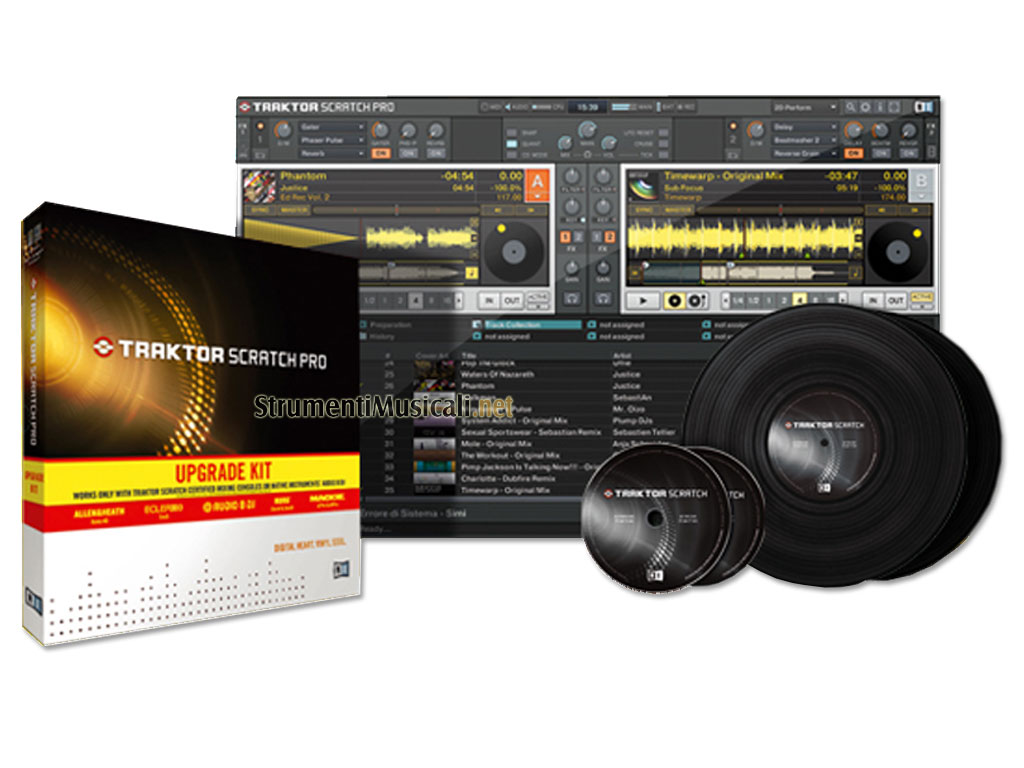 Il nuovissimo TRAKTOR SCRATCH PRO UPGRADE KIT è il DJ system professionale che vi permette di utilizzare e controllare la vostra playlist digitale sia utilizzando piatti tradizionali (vinile) che cd player da Dj. Il pacchetto è composto da un software semplice ed intuitivo (ma potentissimo!), da particolari vinili e cd di controllo (che contengono il timecode proprietario, ovvero il linguaggio di sincronismo). TRAKTOR SCRATCH PRO UPGRADE KIT è ora ancora più potente e conveniente: include infatti il software professionale TRAKTOR PRO, che permette di gestire sino a 4 deck, utilizzare i nuovissimi effetti (21) e sfruttare tutta una serie di nuove caratteristiche rivoluzionarie.