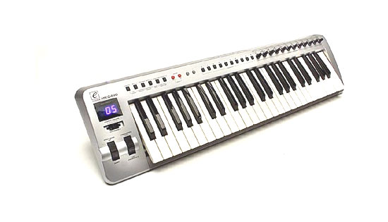 The well-designed Evolution MK-249C MIDI keyboard plugs into your computer's USB port to let you control a variety of software synthesizers, samplers, and multitrack recorders. Some of the included software is elementary, but the MK-249C will work with almost any MIDI-compatible music software. Though it has no on-board sounds, the keyboard has some features you don't normally find on controllers at this price, such as assignable knobs and buttons that let you tweak sounds and effects while you play. The keyboard also features pitchbend wheel, modulation wheel (fully assignable), volume slider (fully assignable), transpose function, octave shift, program and bank change, 3 digit LED display, 10 non volatile program memory buttons (stored even when keyboard is unplugged), a sustain pedal socket and can also act as a USB to MIDI interface.