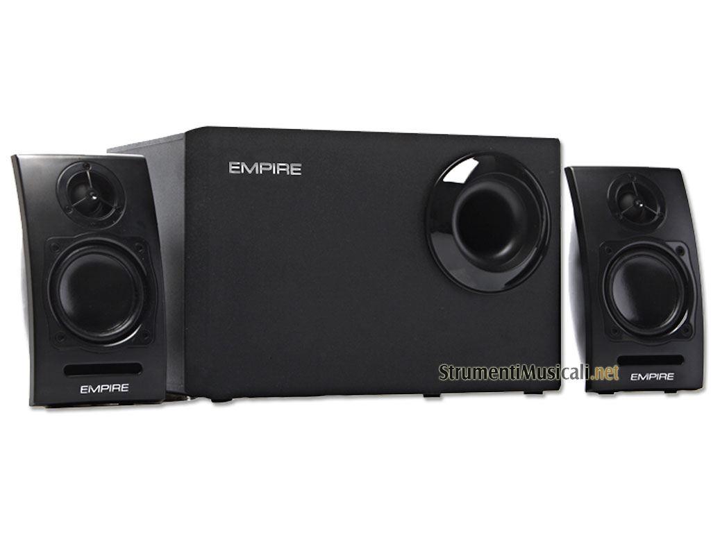 Il nuovo sistema Empire X-Gaming 7000 è composto da un subwoofer e due satelliti. Si caratterizza per la presenza nel woofer, di un driver da 5" a Bobina rinforzata, raccordato reflex, per assicurare una riproduzione ottimale delle basse frequenze. I satelliti a due vie con raccordo reflex per ottimizzare le frequenze medio-basse, composti da un Midrange da 3" ed un Tweeter da 1". Questa soluzione assicura una perfetta riproduzione dei toni medi ed acuti.