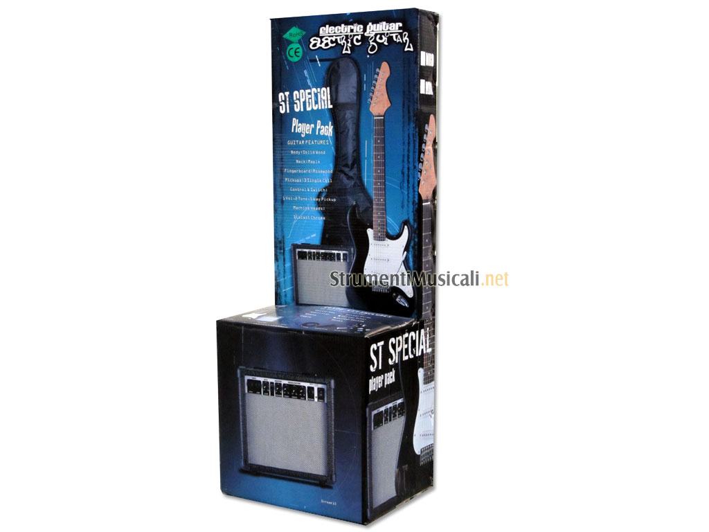 Il Guitar pack piu' completo del momento, include ogni possibile accessorio utile a chi si avvicina per la prima volta alla chitarra elettrica ed include ben due omaggi extra: un supporto da terra in omaggio, una confezione omaggio di corde di ricambio.